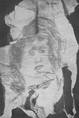 Fig 182: Imitation on chiffon From Phenomena of Materialisation by Baron von Schrenck-Notzing (1920, Kegan Paul, Trench & Co. Ltd, London).